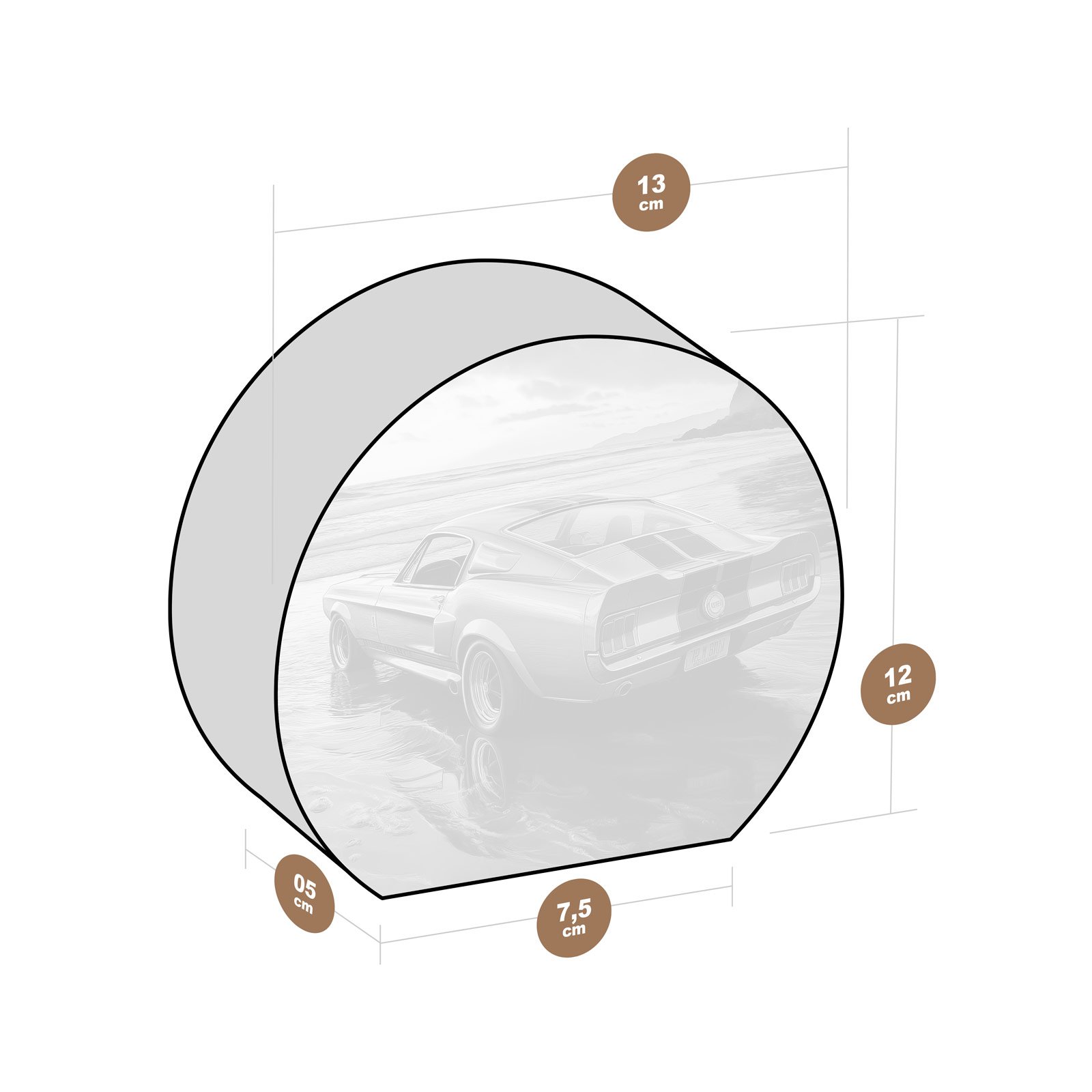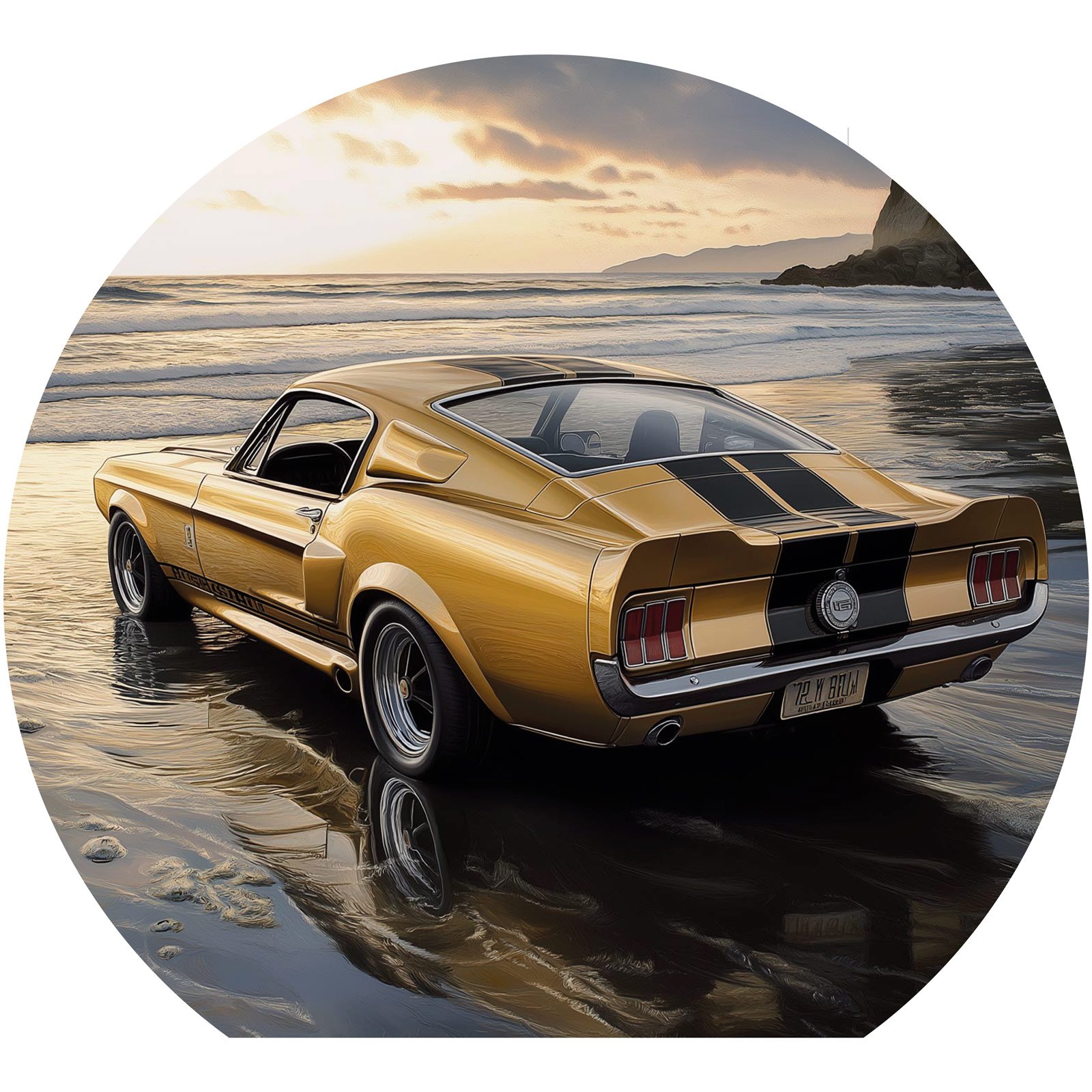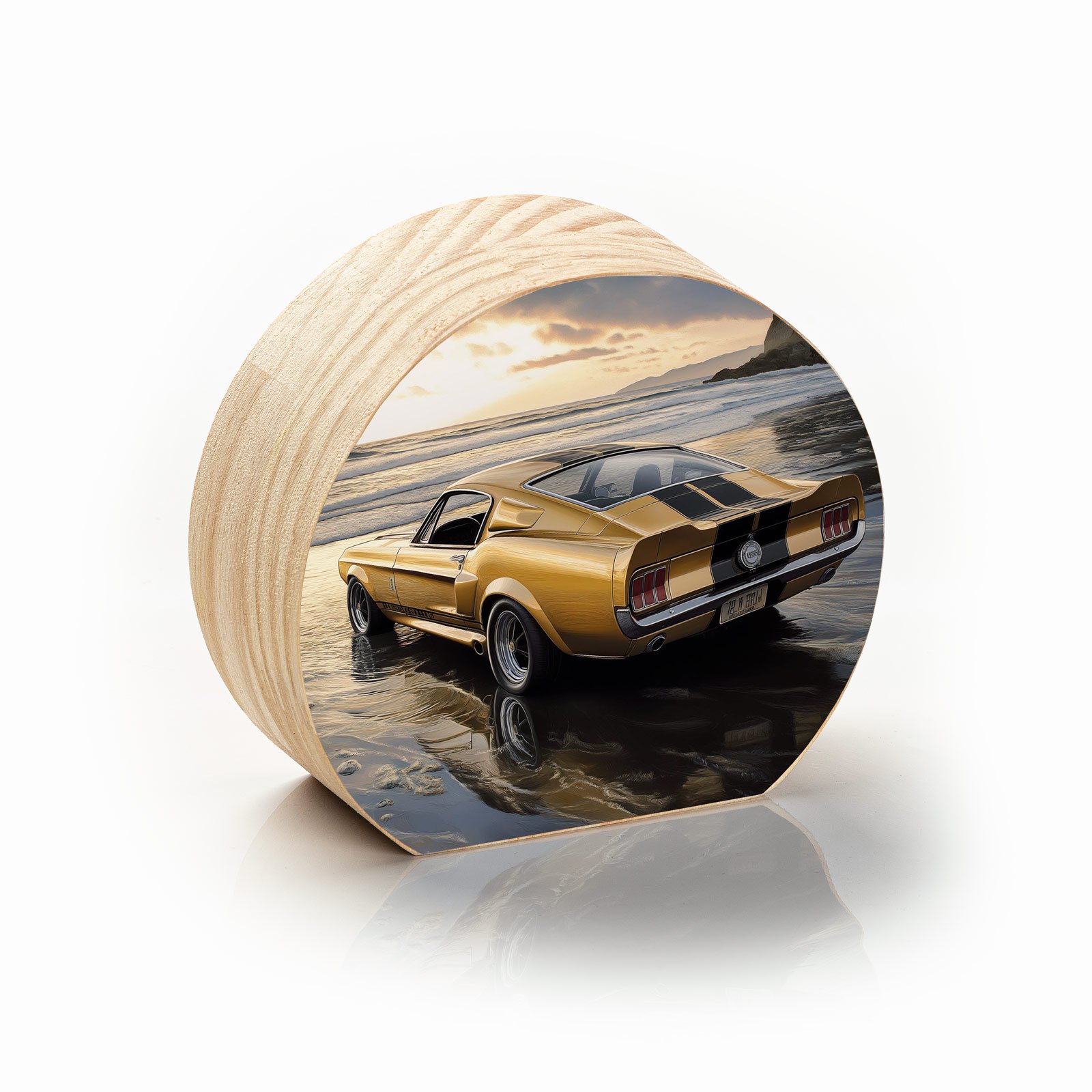 Sinta a liberdade de uma estrada sem fim com o Totem Decorativo ‘Rastro de Ouro’ da Linha Luna, uma peça que une potência e contemplação. O lendário Mustang dourado repousa sobre a areia úmida, banhado pelo pôr do sol, evocando memórias de aventura, velocidade e momentos que não voltam, mas sempre vivem dentro de nós.