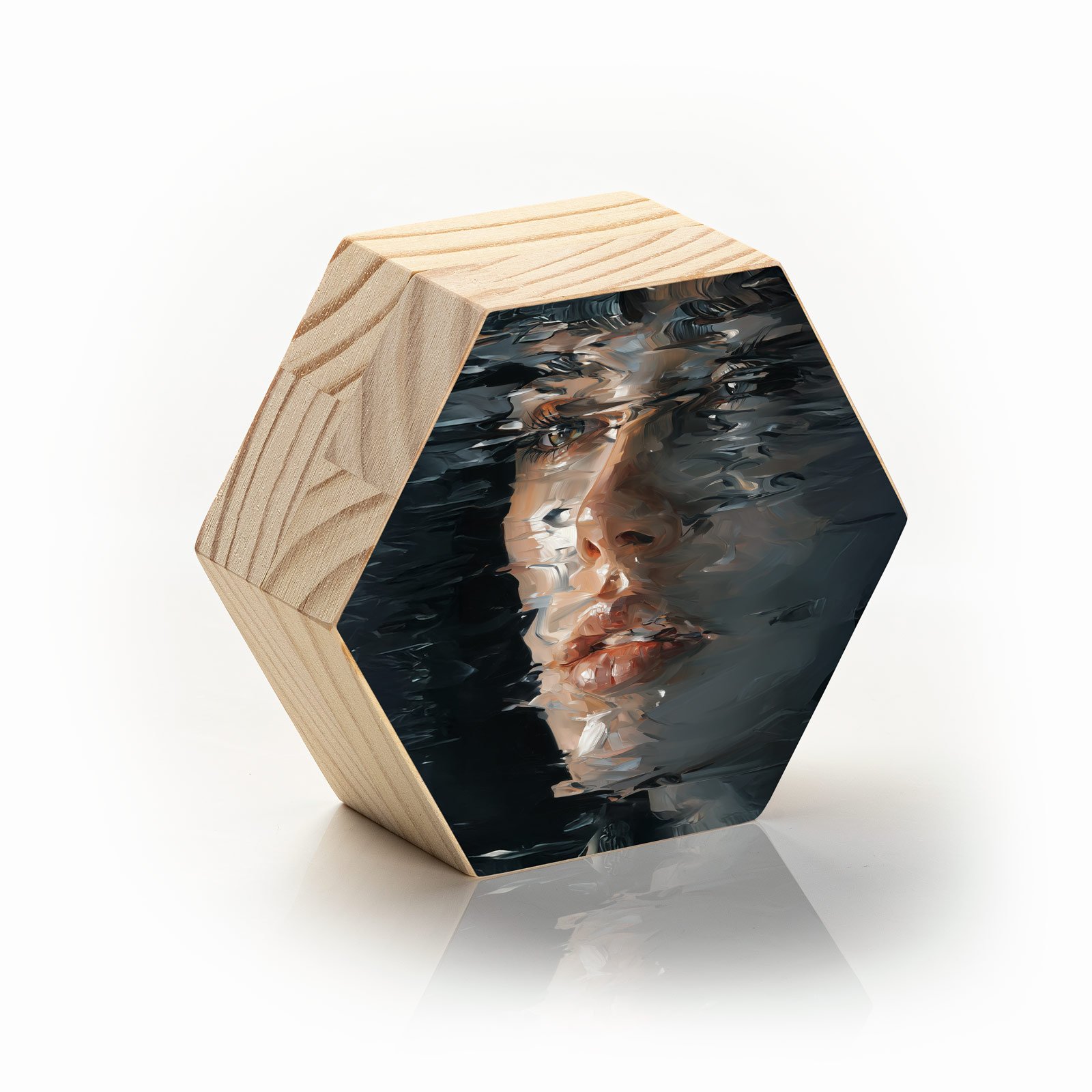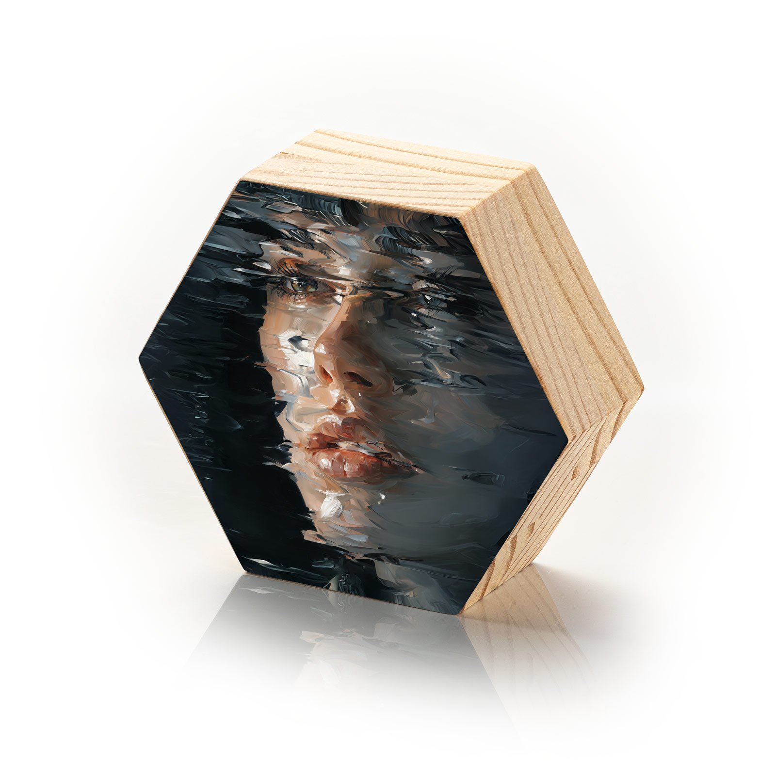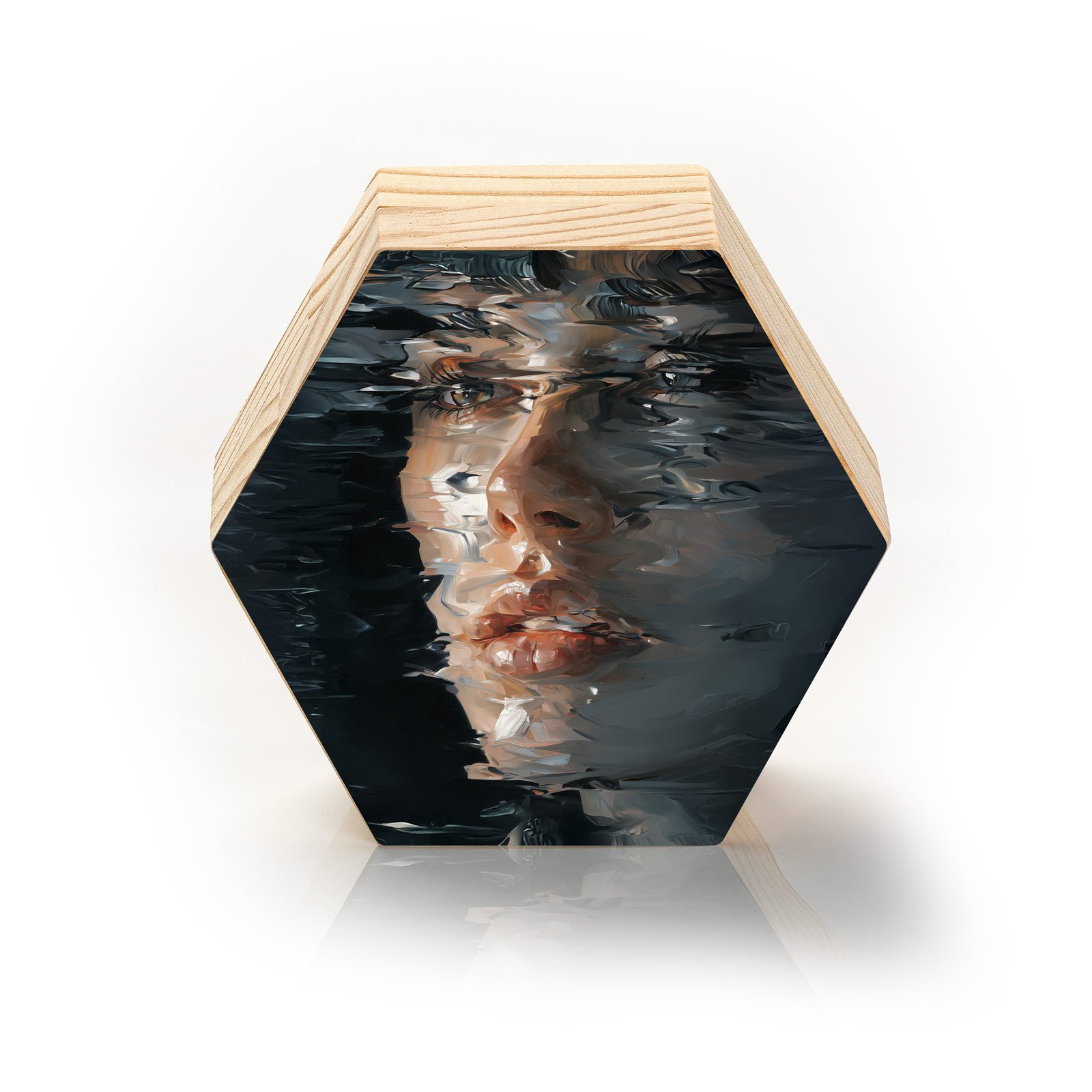 Entre camadas de pinceladas densas e reflexos distorcidos, “Reflexos da Alma” captura a intensidade silenciosa de um olhar que atravessa a superfície. A fusão entre realismo e abstração cria uma atmosfera enigmática, como se a obra convidasse o espectador a mergulhar nas profundezas de suas próprias emoções.