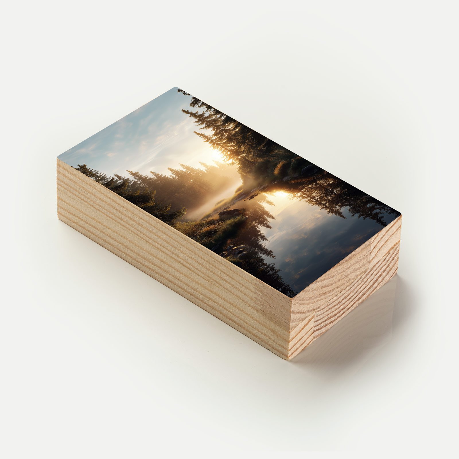 - Material: madeira pinus natural com impressão Fine Art e acabamento em metacrilato;