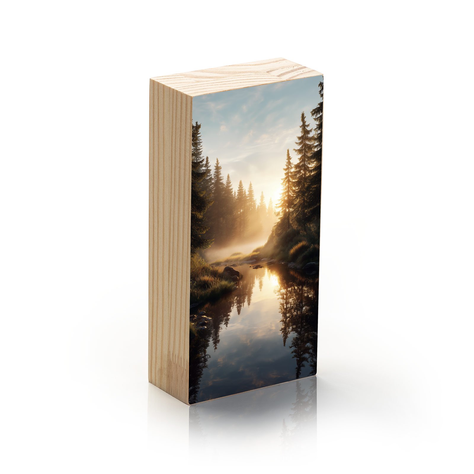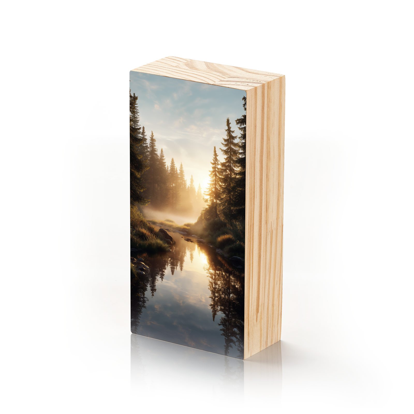 Entre pinheiros silenciosos e a bruma dourada do sol nascente, “Reflexos do Amanhecer” é um convite à contemplação. O rio espelhado transforma o horizonte em pintura viva, onde cada detalhe inspira serenidade e presença. Uma peça que traz para dentro de casa a força delicada da natureza em seu instante mais puro.