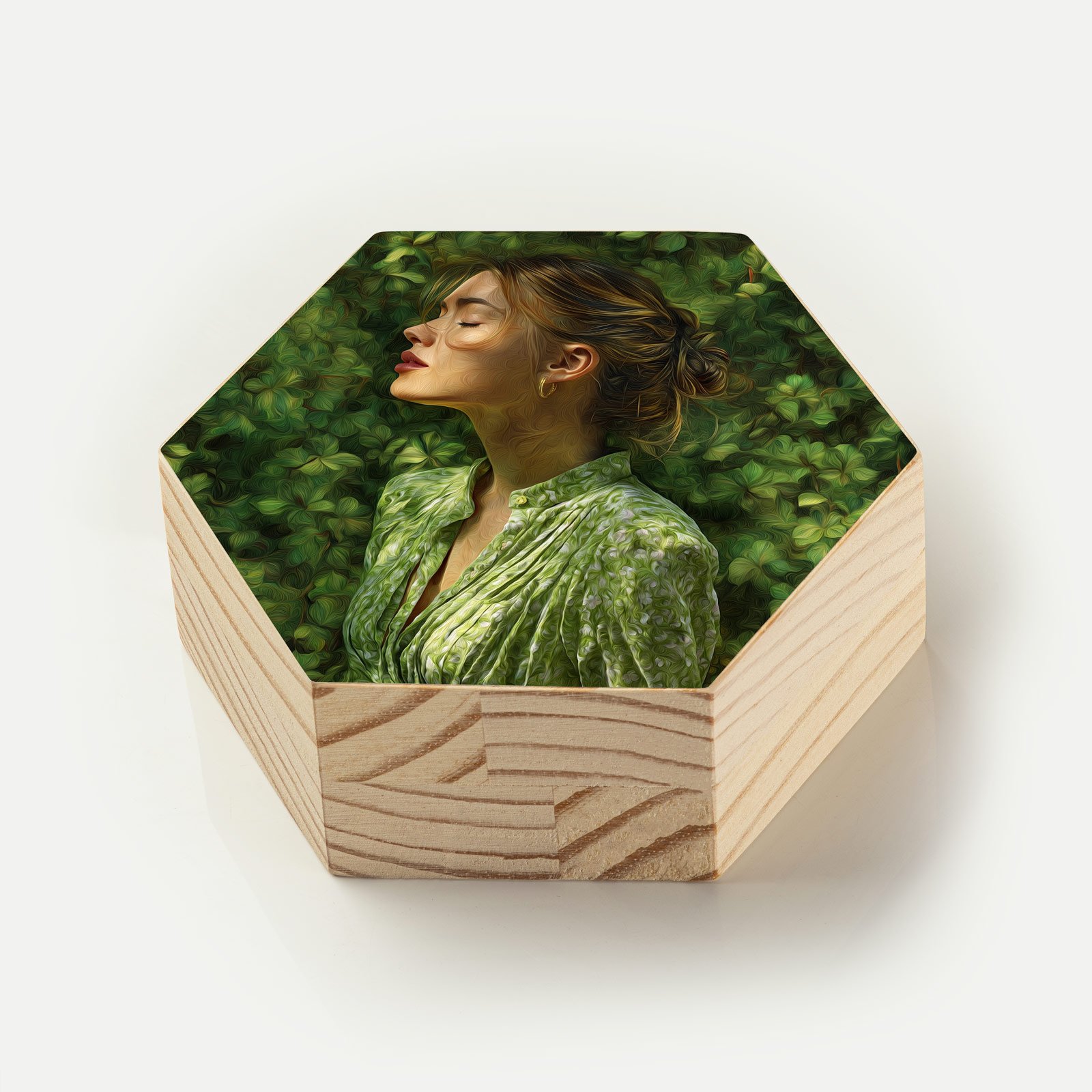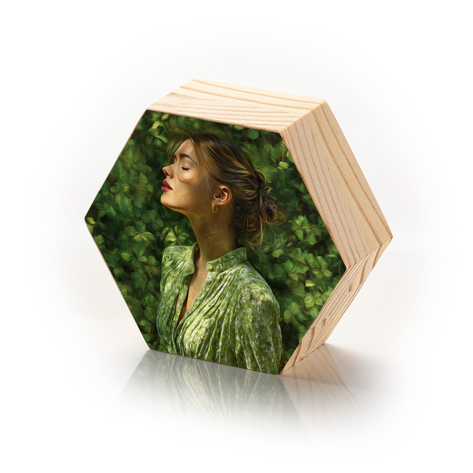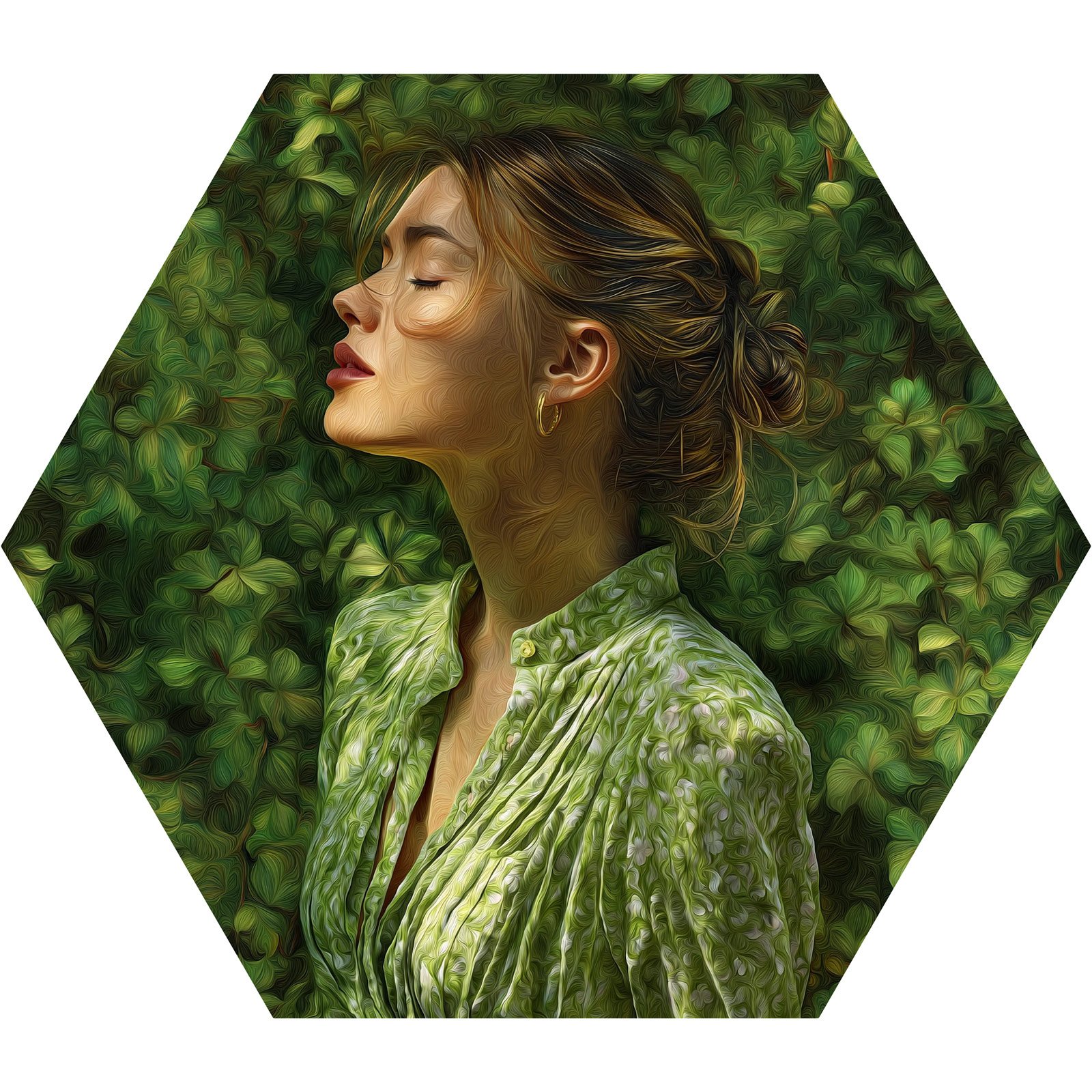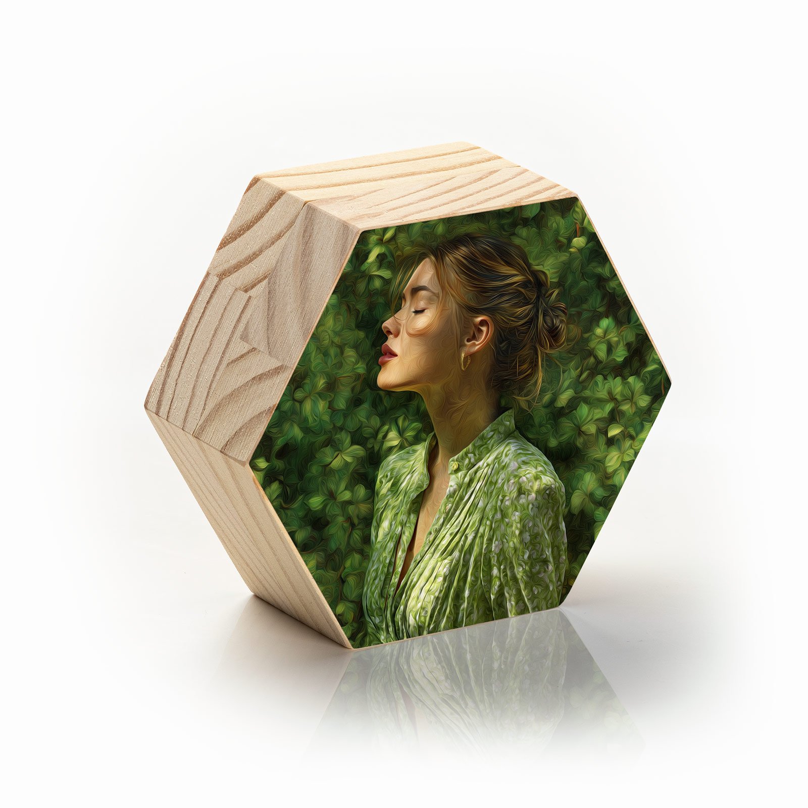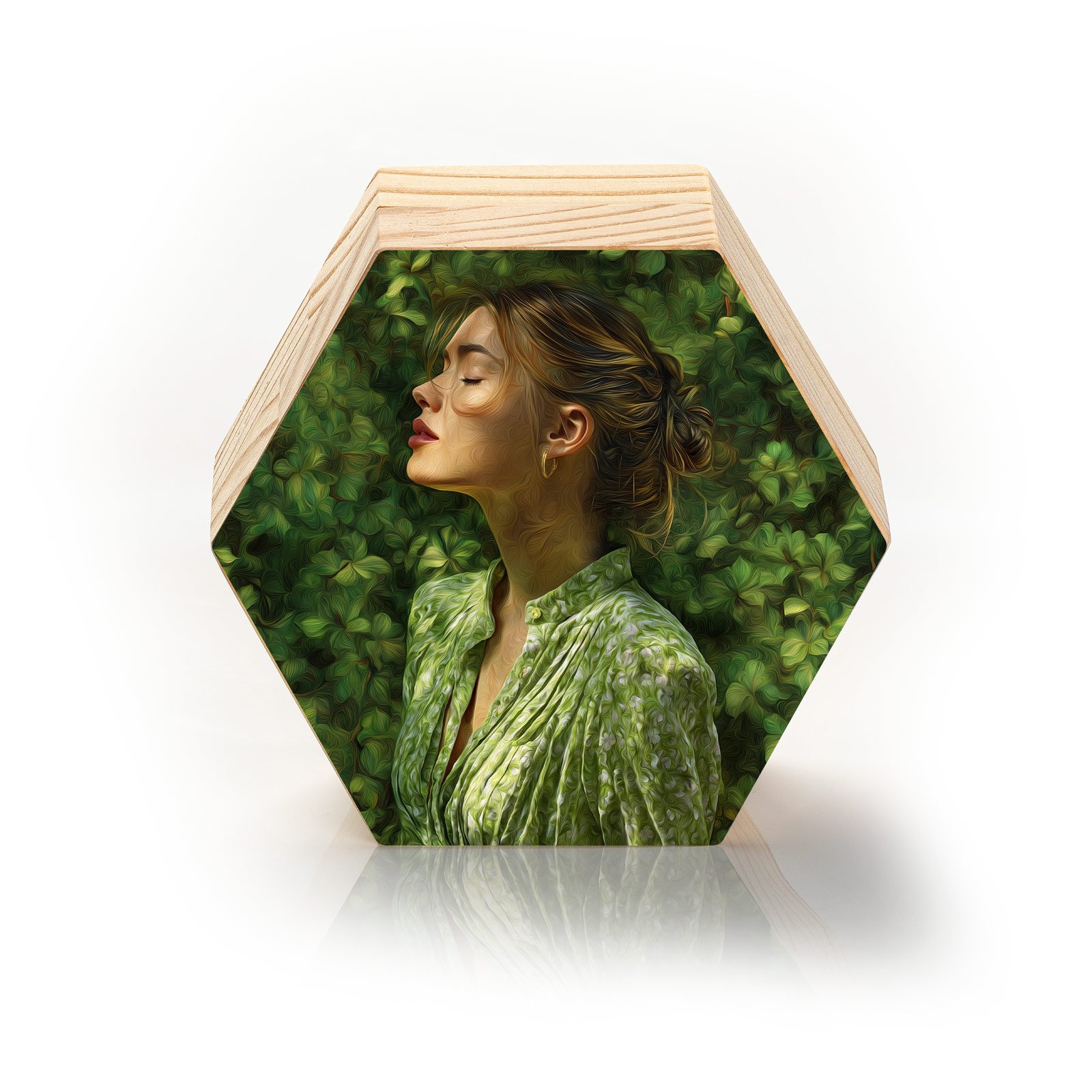 Pausa, presença e conexão com o agora. O Totem Decorativo “Respirar Verde”da Linha Hezag retrata uma mulher de olhos fechados, cercada por uma profusão de folhas, enquanto inspira a serenidade da natureza ao seu redor. Uma cena que evoca harmonia, autocuidado e reconexão com o essencial.