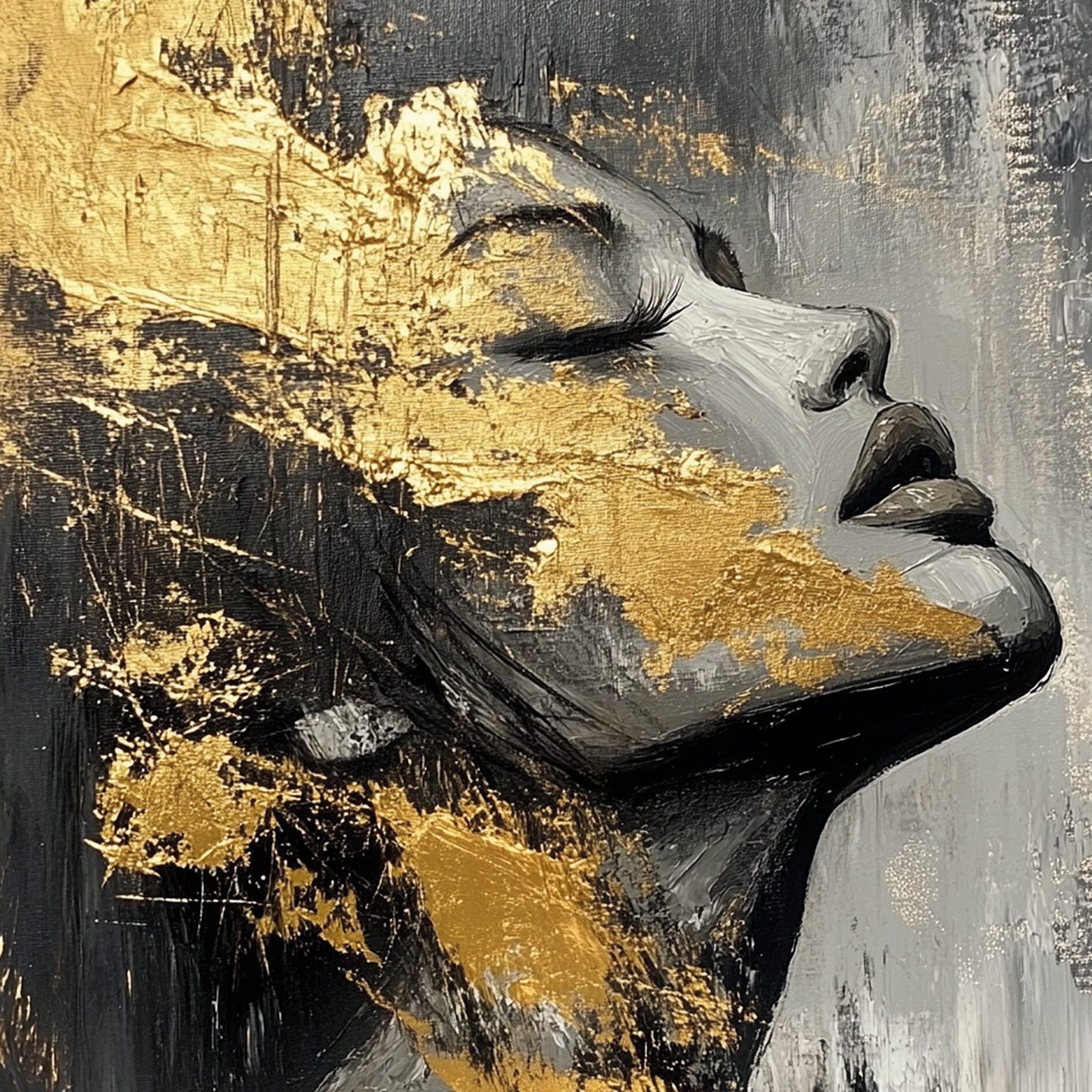 Transforme seu ambiente com a intensidade e a beleza do Totem Decorativo “Ressignificar” da HomeTotem. Com uma arte que combina o contraste do preto e branco com dourado texturizado, esta peça retrata um momento de renascimento e valorização interior através da arte contemporânea.