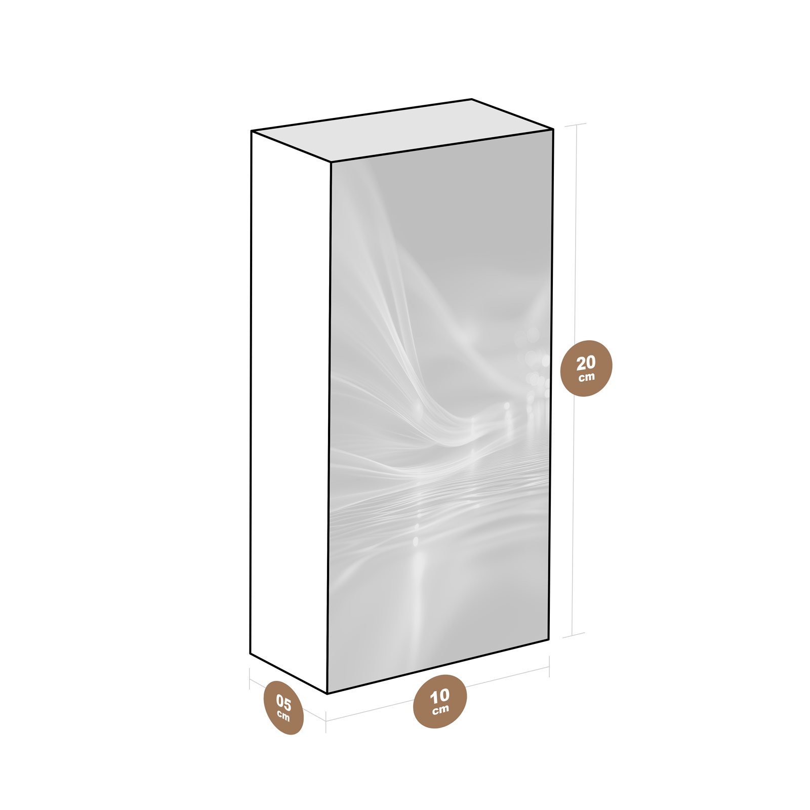 - Dimensões: 10 cm (largura) x 20 cm (altura) x 6 cm (profundidade);