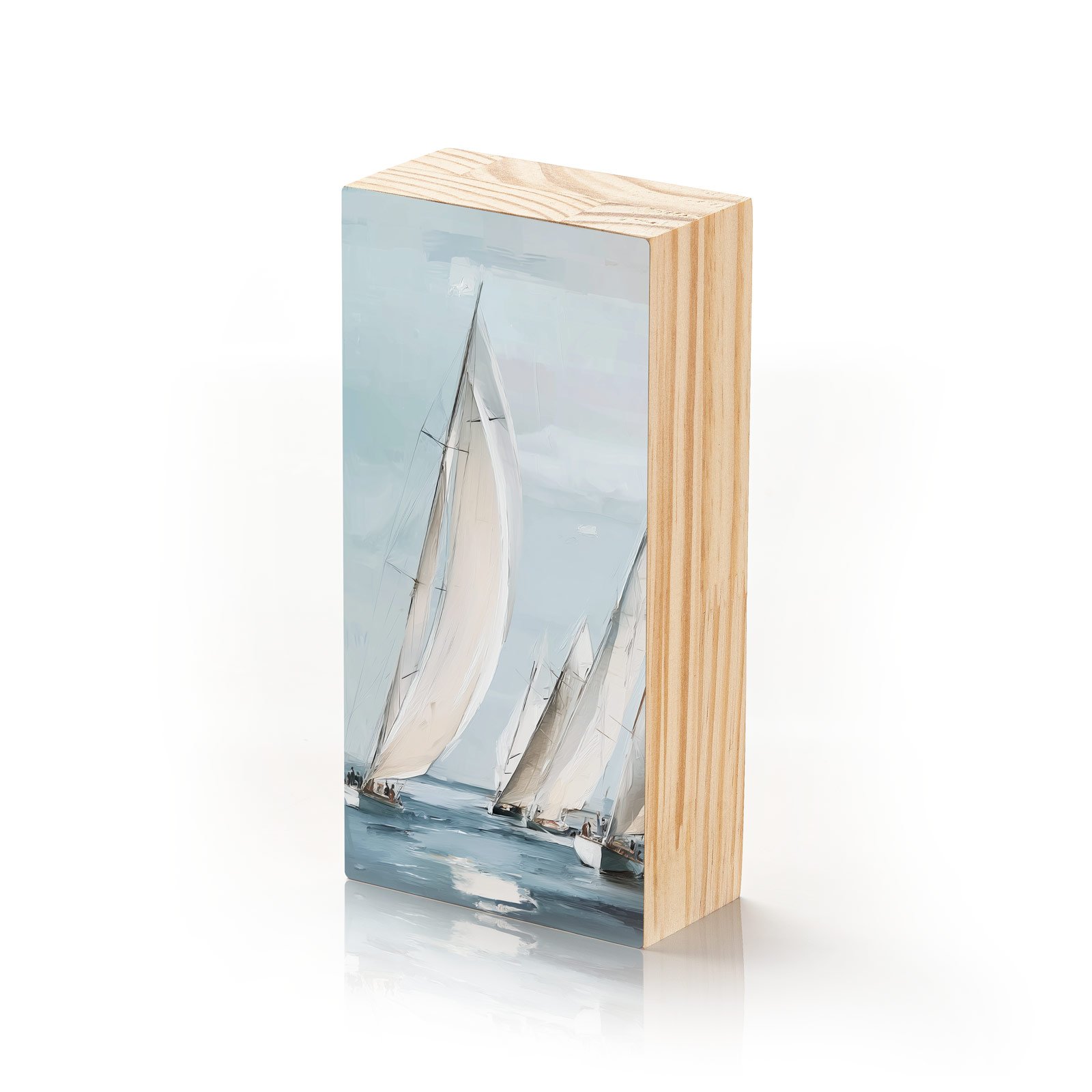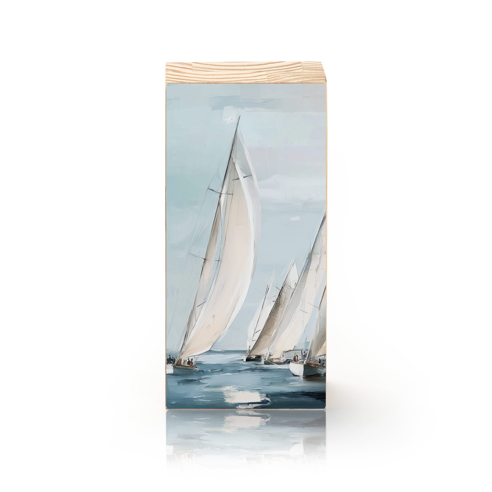 “Ritmo do Vento” da Linha Vert, captura a essência da liberdade e do movimento. As velas brancas se abrem imponentes, conduzindo as embarcações sobre um mar tranquilo e refletido pela luz suave. É uma obra que transmite leveza, energia e a sensação de seguir em frente, embalado pela força invisível do vento.