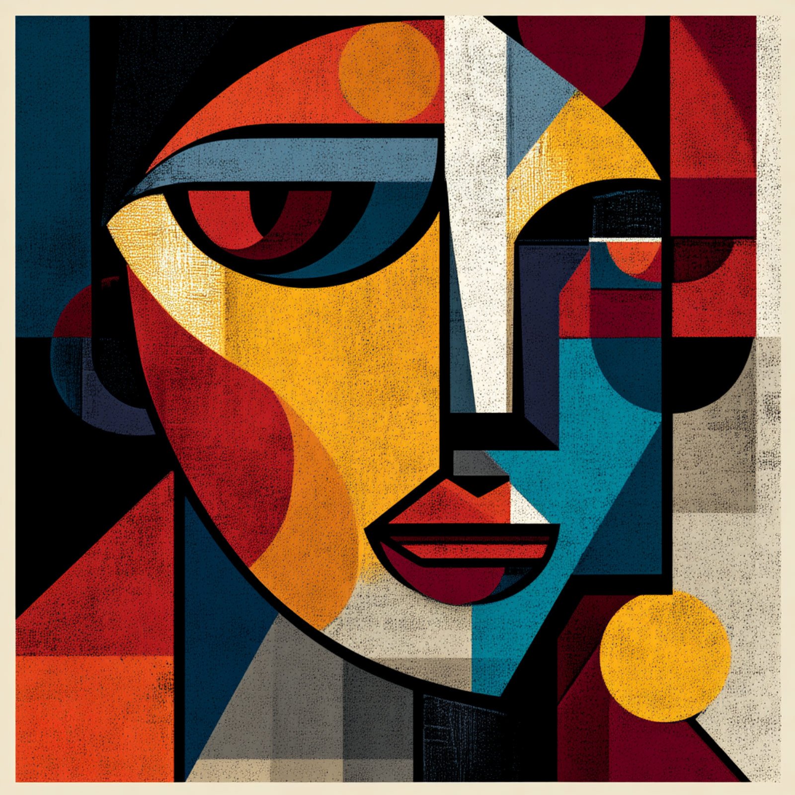 O “Rosto em Fragmentos” é uma obra que celebra a força do cubismo em sua versão mais vibrante e contemporânea. Cada cor, cada linha e cada forma geométrica se fundem para criar um olhar enigmático, onde o humano é reinterpretado através da abstração.