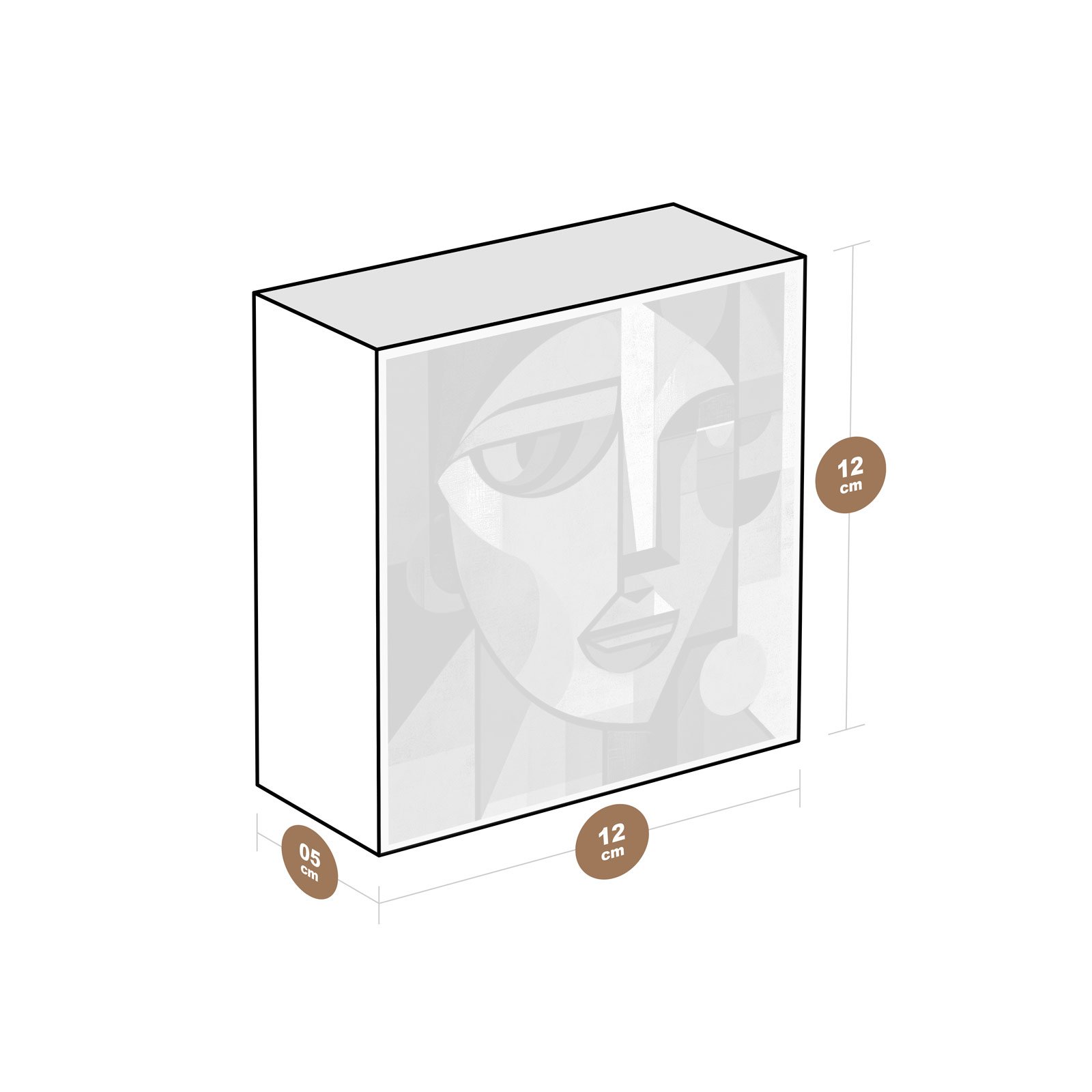 - Dimensões: 12 cm (largura) x 12 cm (altura) x 6 cm (profundidade);