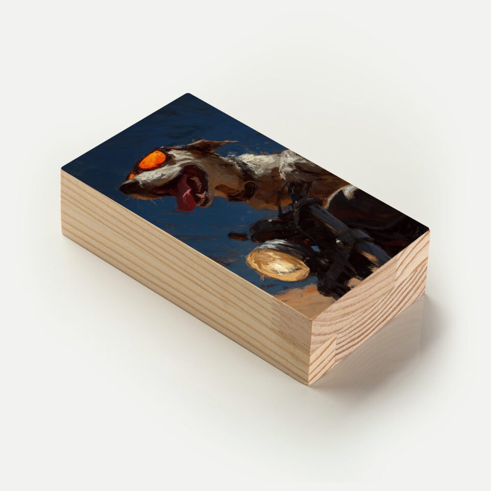 - Material: madeira pinus natural com impressão Fine Art e acabamento em metacrilato;