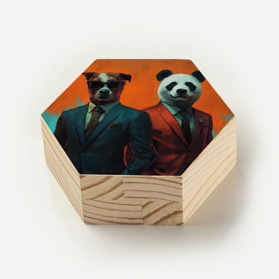 - Material: madeira pinus natural com impressão Fine Art e acabamento em metacrilato;