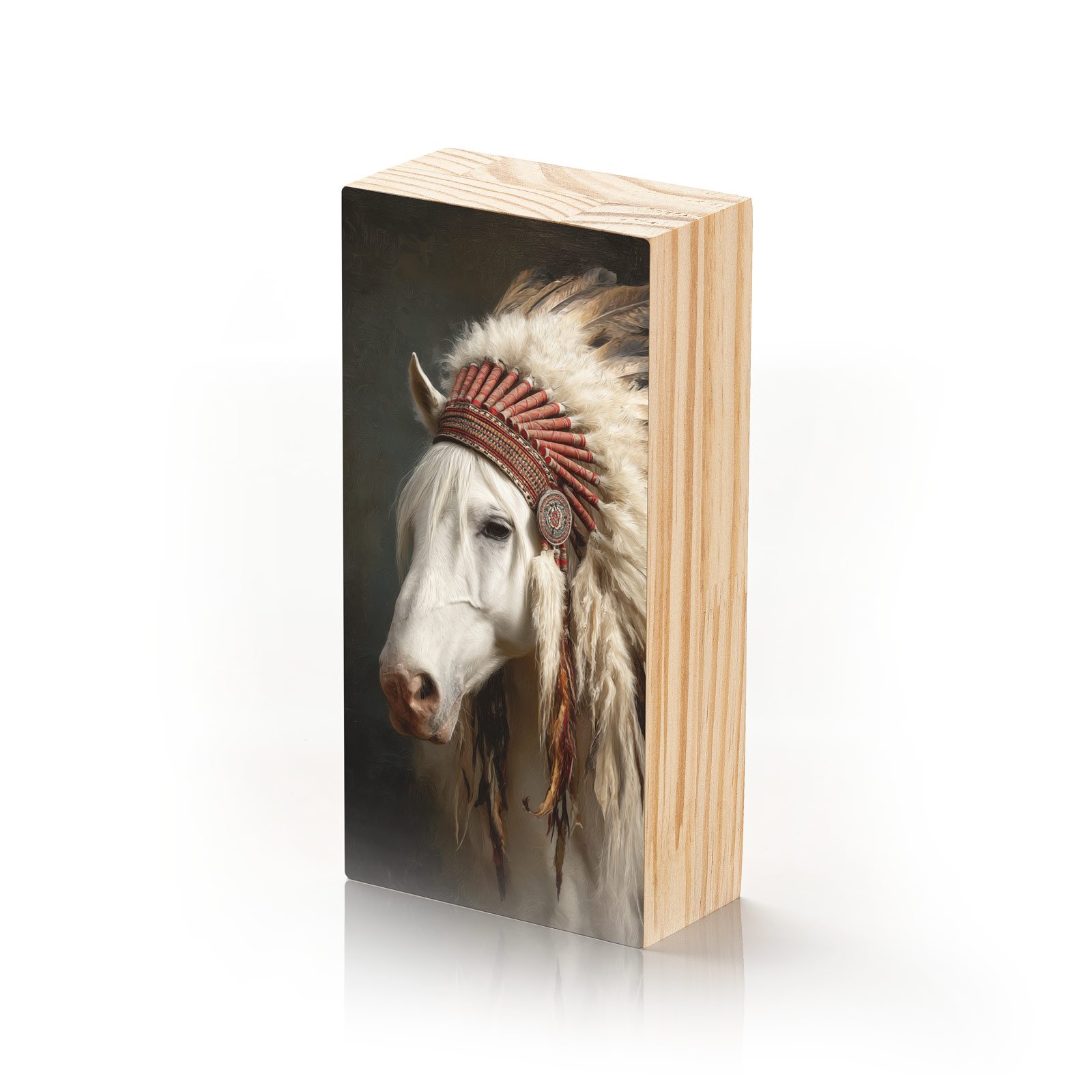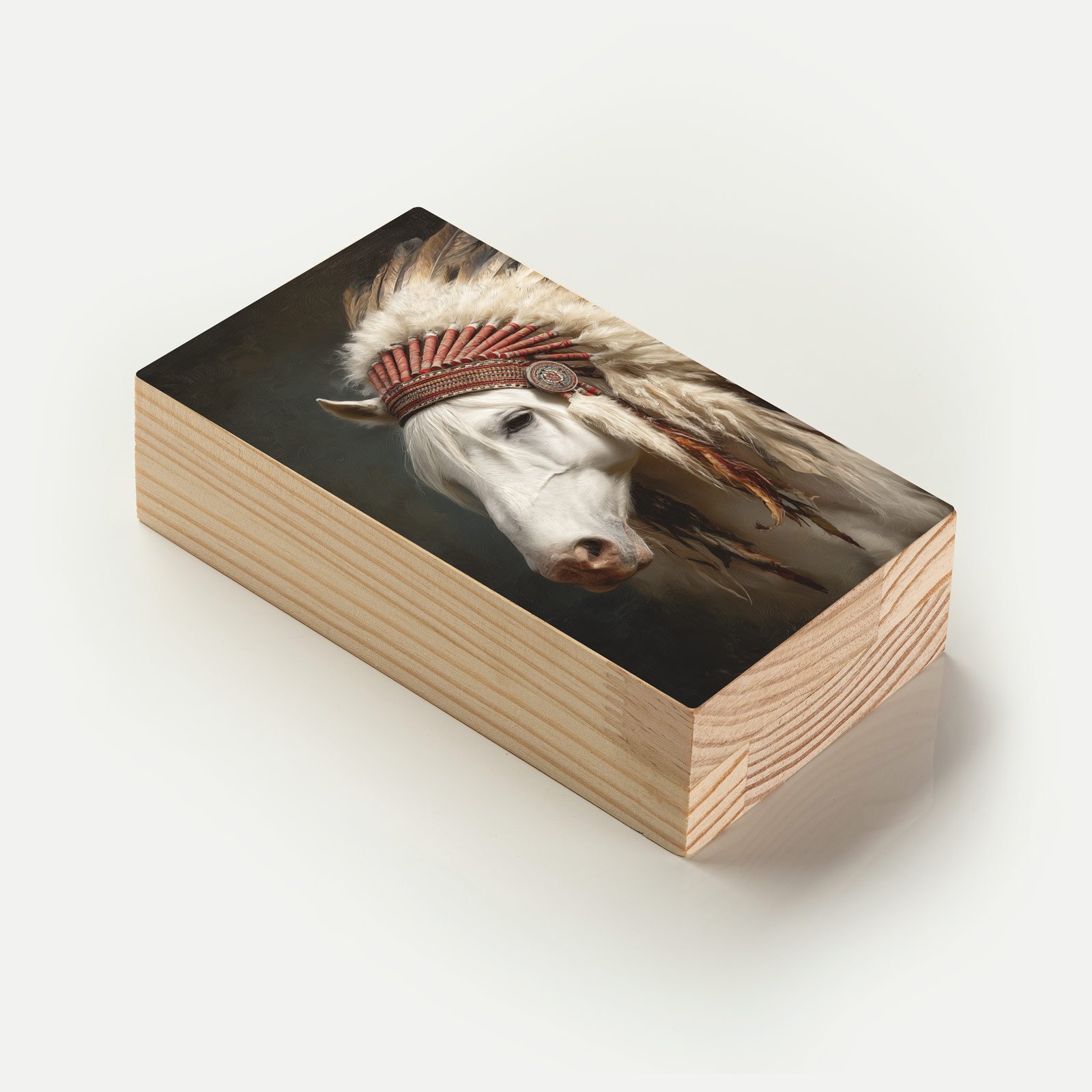 Sinta a força livre da natureza com o Totem Decorativo “Selvageria Espiritual” da Linha Vert, uma peça que une a nobreza do cavalo com a ancestralidade de culturas indígenas. O animal, adornado com um imponente cocar, simboliza liberdade, honra e conexão profunda com a terra e os espíritos guardiões.