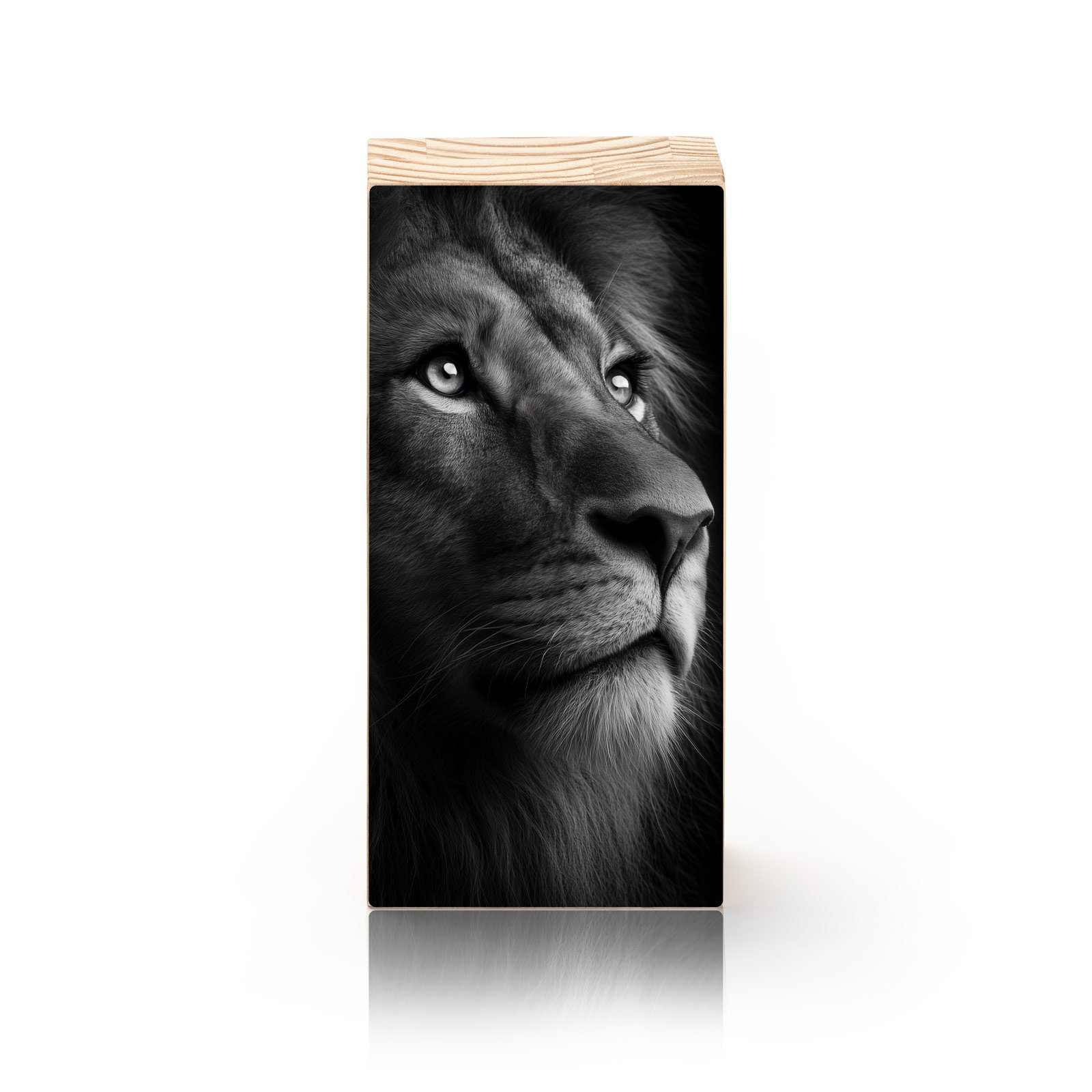 A verdadeira força não grita. O Totem Decorativo “Silêncio do Rei” da Linha Vert, retrata um leão em preto e branco, com olhar sereno e contemplativo, evocando respeito e introspecção. Uma homenagem à nobreza silenciosa de quem lidera com presença e sabedoria.