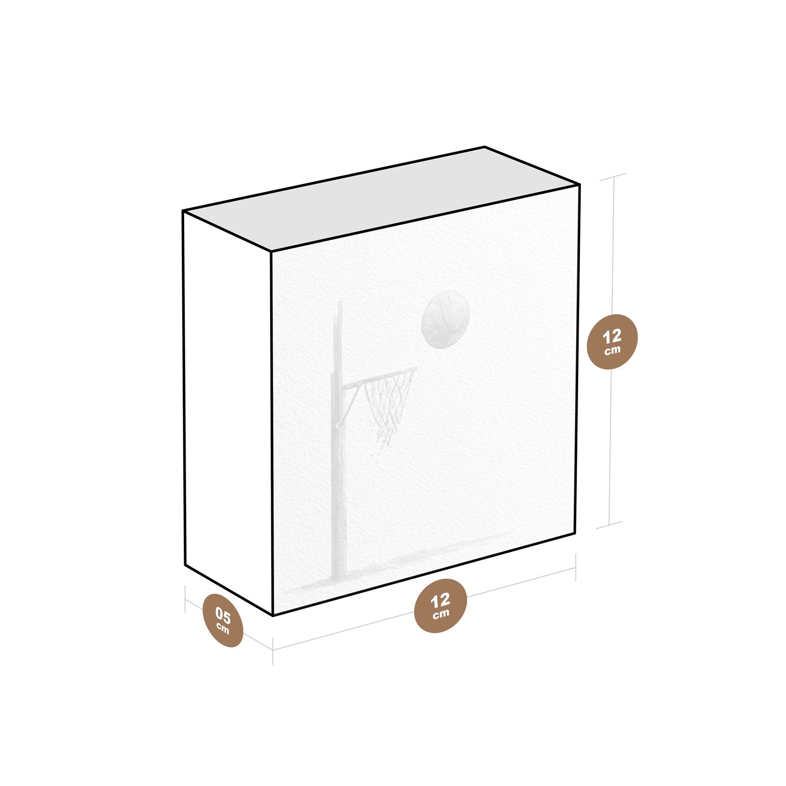 - Dimensões: 12 cm (largura) x 12 cm (altura) x 6 cm (profundidade);