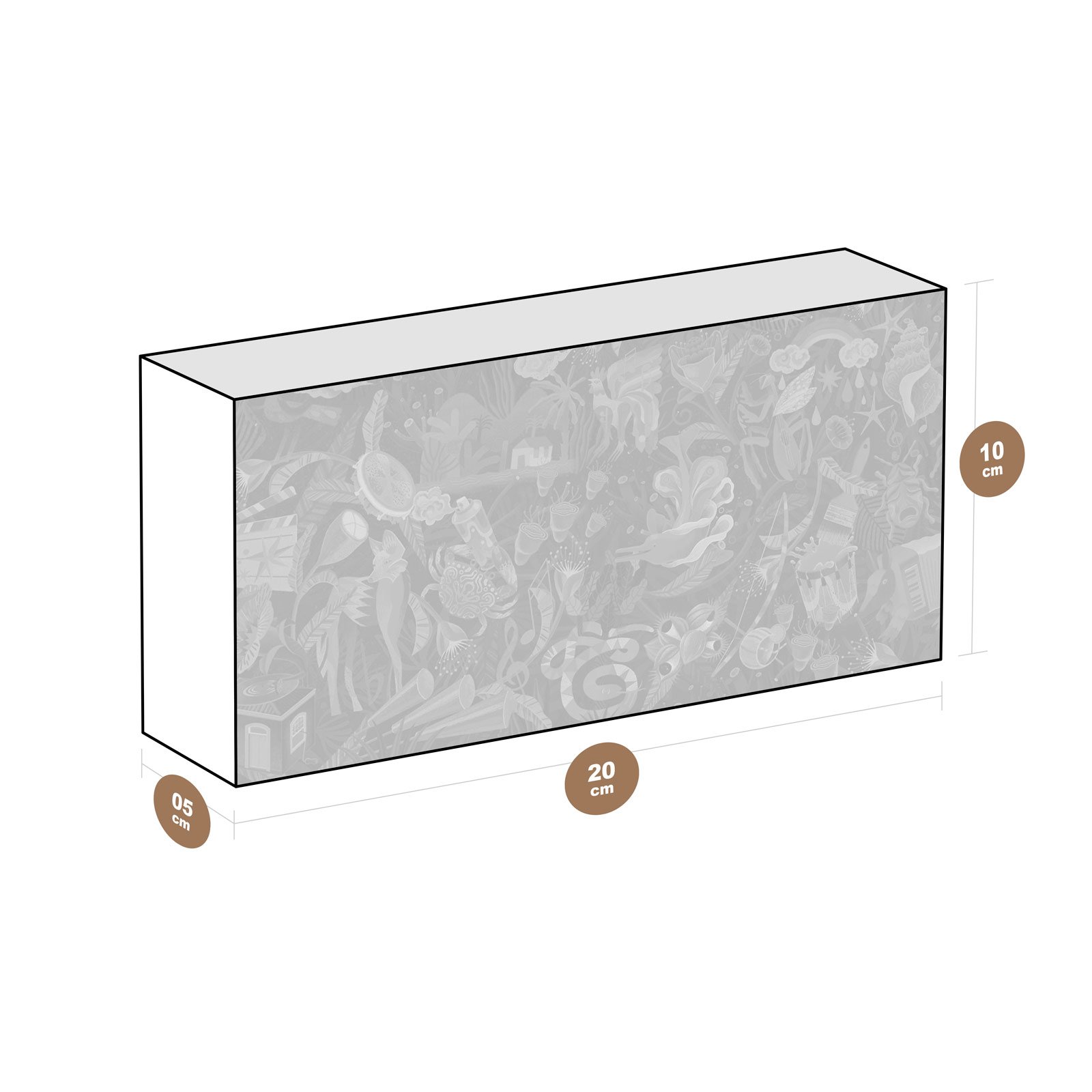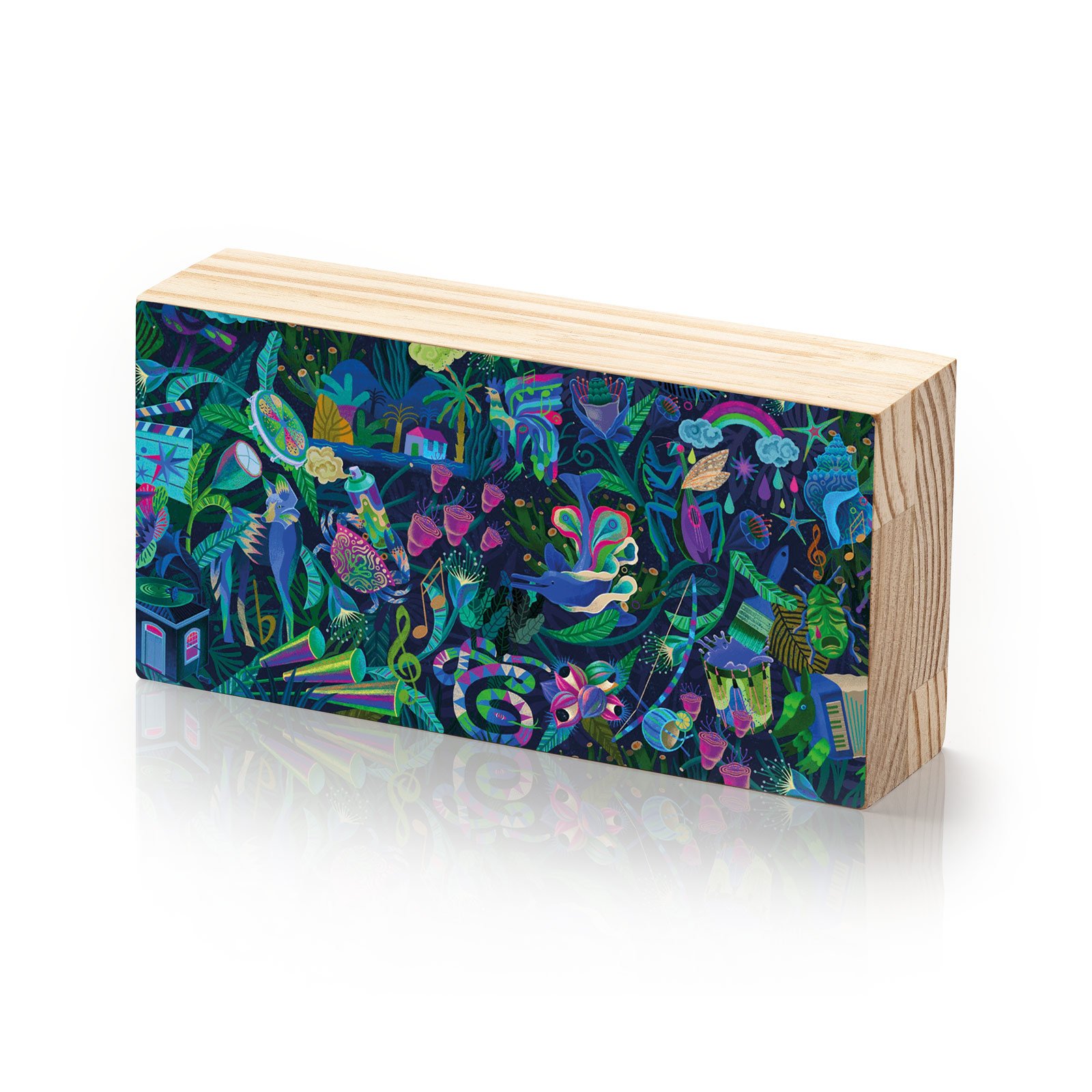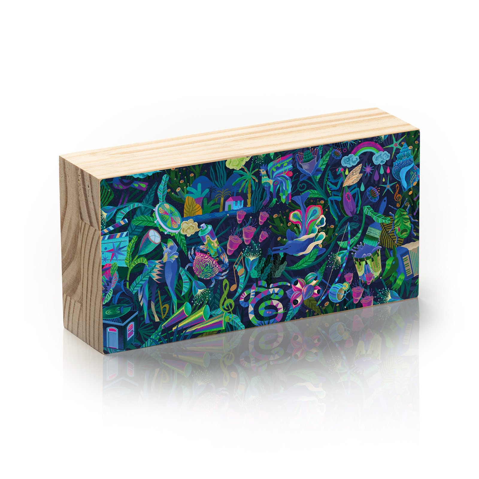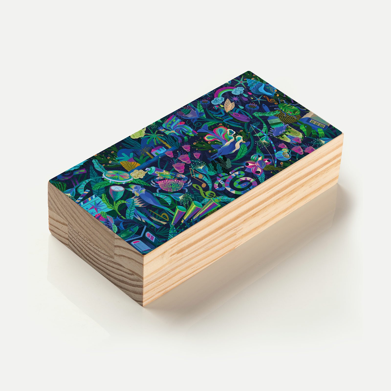 - Material: madeira pinus natural com impressão Fine Art e acabamento em metacrilato;