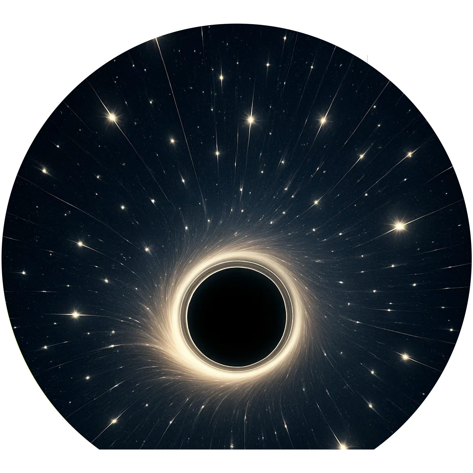 A imagem retrata com uma beleza estonteante a força gravitacional avassaladora que curva a luz das estrelas, puxando-as para um centro de silêncio e poder absolutos. É uma dança cósmica no limite da realidade, um vislumbre do infinito.