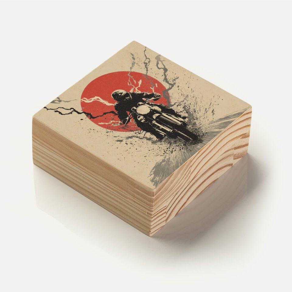 - Material: madeira pinus natural com impressão Fine Art e acabamento em metacrilato;