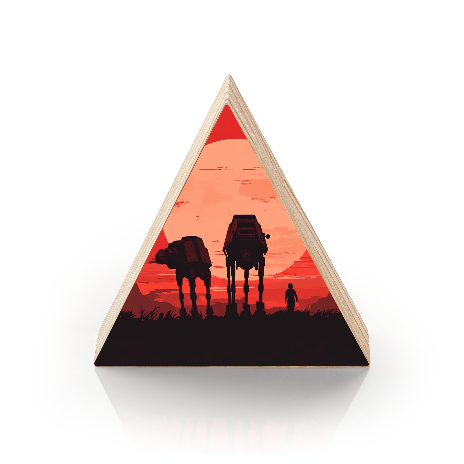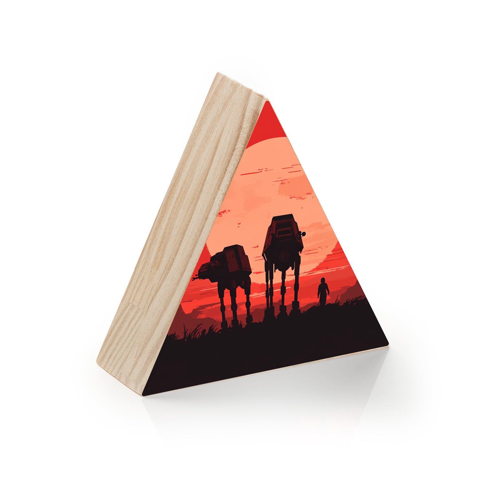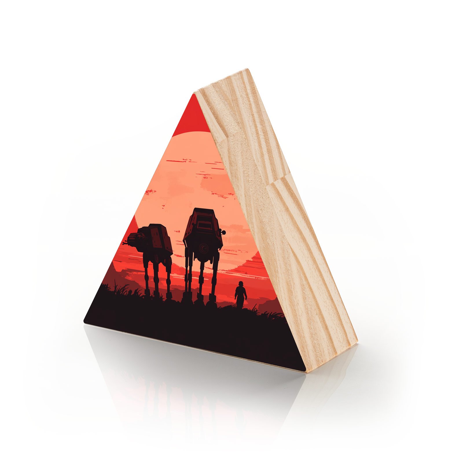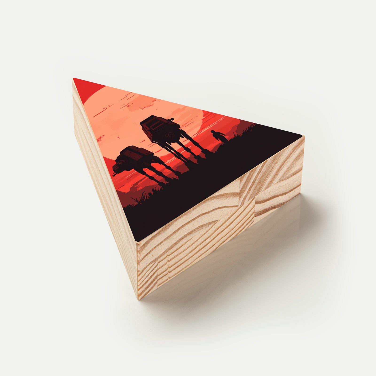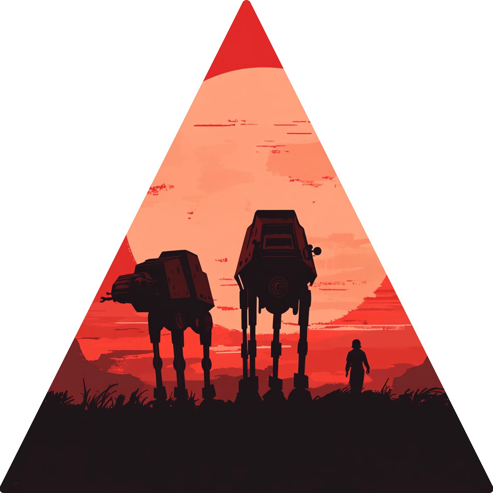 Viaje para uma galáxia distante com o Totem Decorativo “Sombras do Império” da Linha Trion, uma obra visual que mistura serenidade e tensão em um único cenário. O contraste entre o pôr do sol avermelhado e as imponentes silhuetas das máquinas de guerra imperiais cria uma atmosfera de contemplação e domínio, onde cada passo ecoa no vazio de um planeta desconhecido.