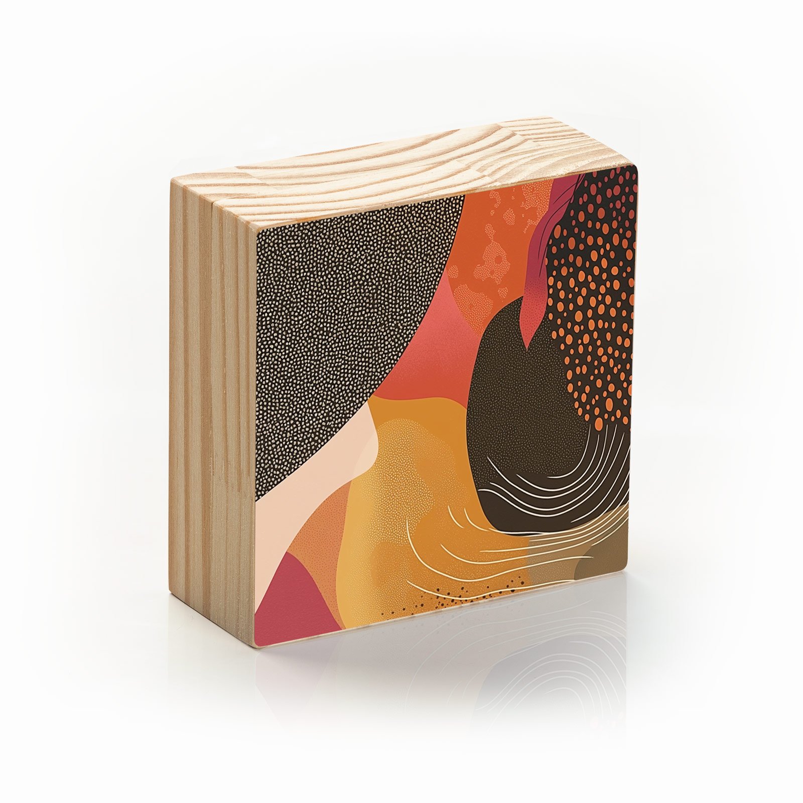 O Totem Decorativo ‘Terracota Cósmica’ mistura formas orgânicas, curvas fluídas e um jogo de texturas pontilhadas que evocam movimento e profundidade. Sua paleta de cores quentes — com tons de terracota, mostarda, rosê e preto — cria uma atmosfera envolvente, remetendo ao solo fértil, ao corpo e ao cosmos. Uma peça abstrata que provoca os sentidos e estimula interpretações subjetivas e contemplativas.