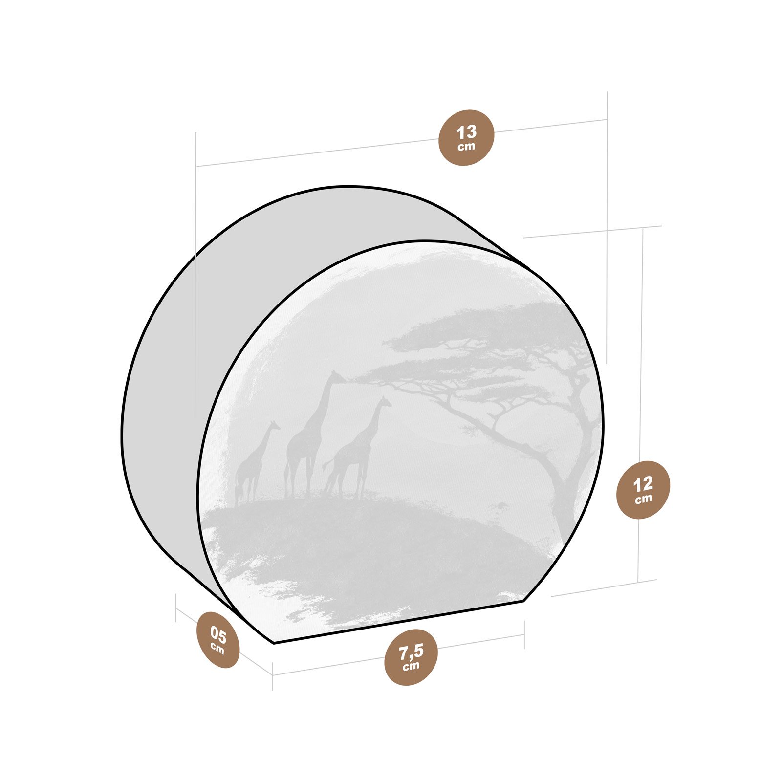 Silhuetas de girafas se recortam contra um céu em chamas, onde o sol mergulha no horizonte e a natureza se impõe em sua forma mais poética. O Totem Decorativo “Tribo do Horizonte” da Linha Luna, é um retrato visual da harmonia entre vida selvagem, ancestralidade e liberdade.
