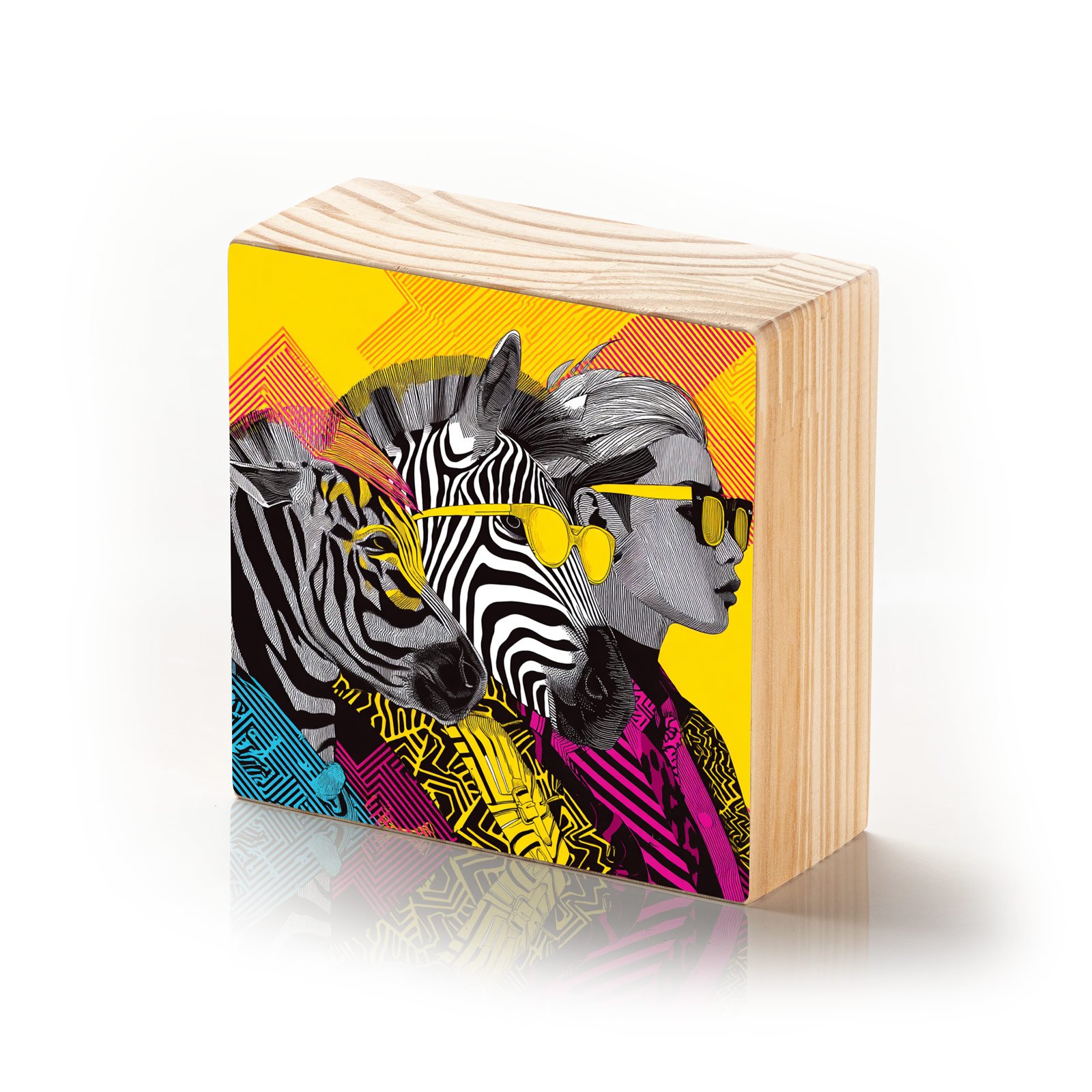 - Material: madeira pinus natural com impressão Fine Art e acabamento em metacrilato;