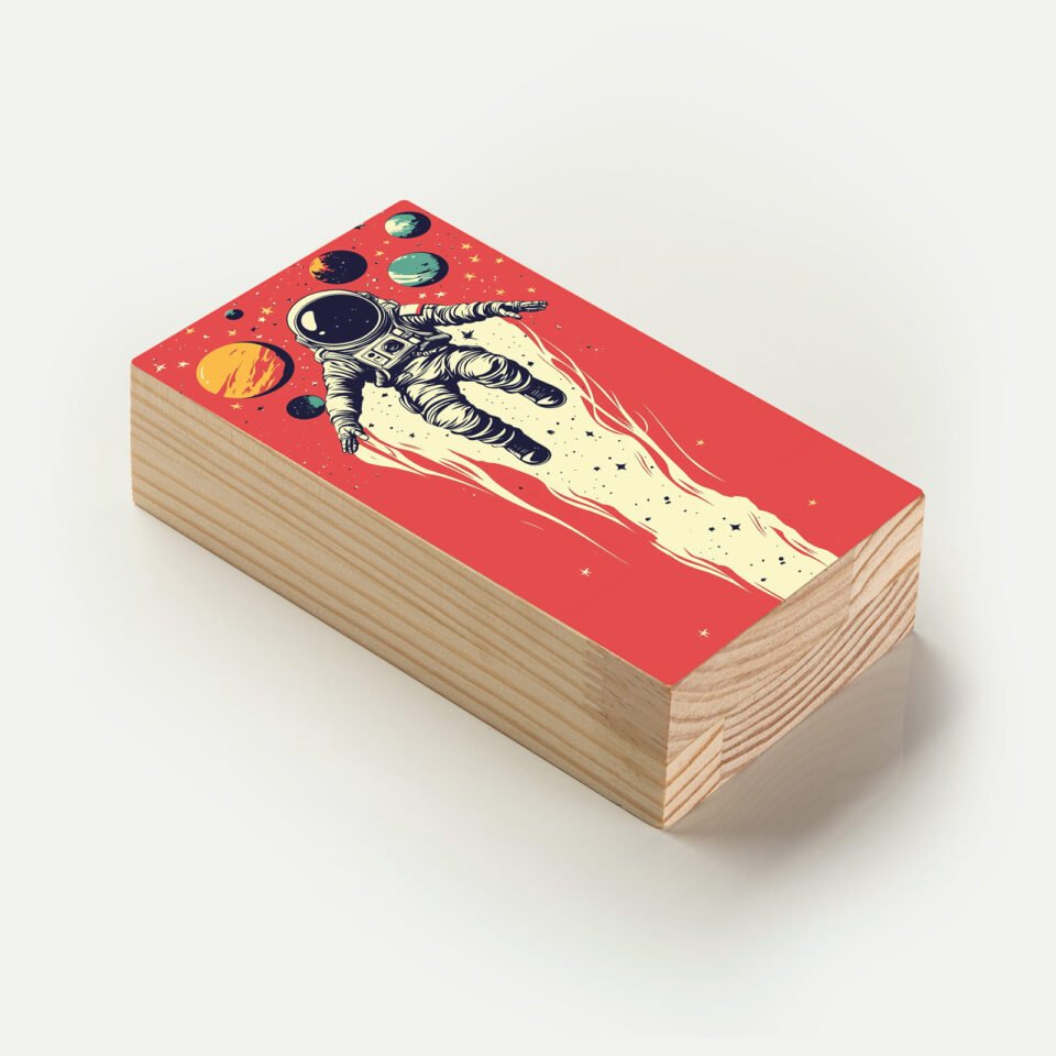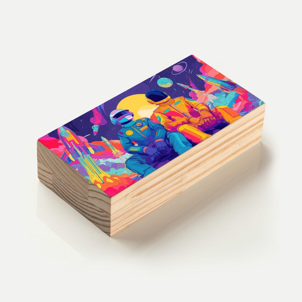 - Material: madeira pinus natural com impressão Fine Art e acabamento em metacrilato;
