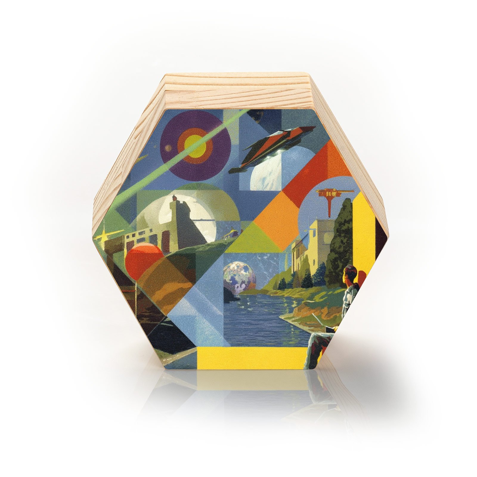 Um universo de possibilidades se revela em “Utopia Paralela” da Linha Hezag, onde blocos de cores vibrantes fragmentam e reorganizam paisagens oníricas, tecnologia e natureza em perfeita harmonia. A obra nos transporta para um futuro idealizado, onde ciência, arte e contemplação coexistem com leveza.