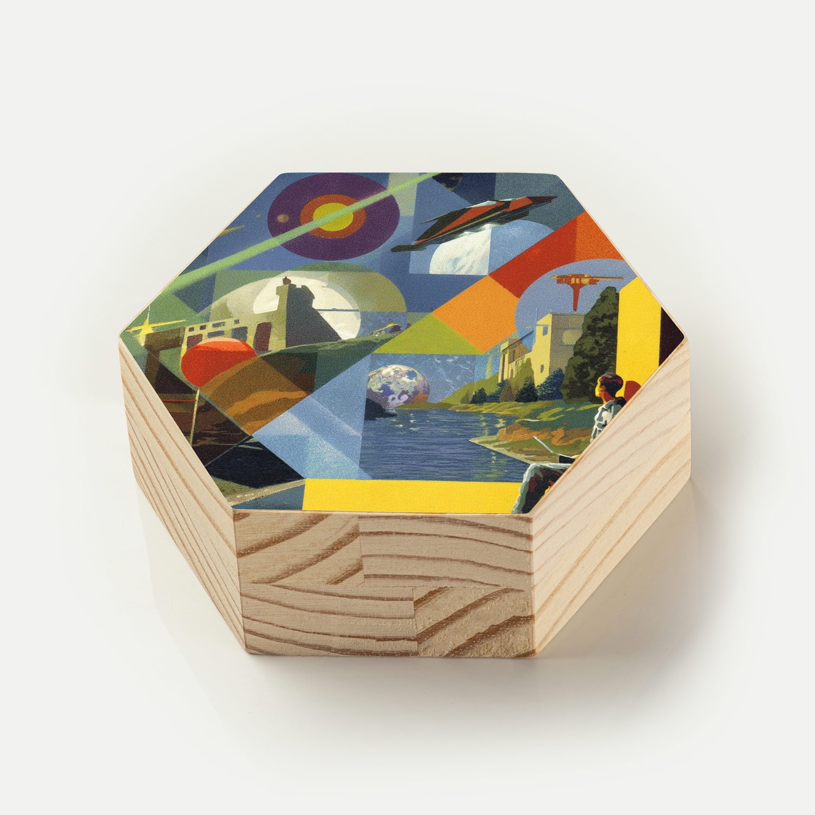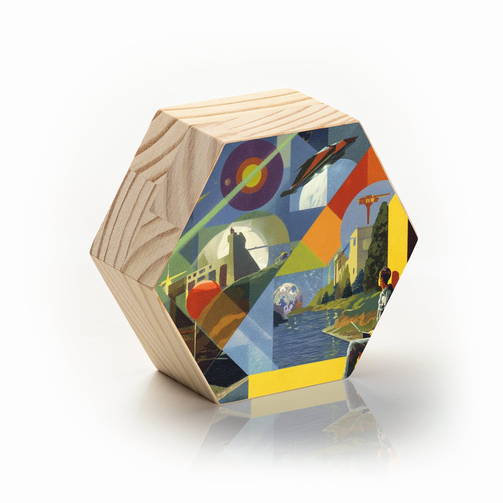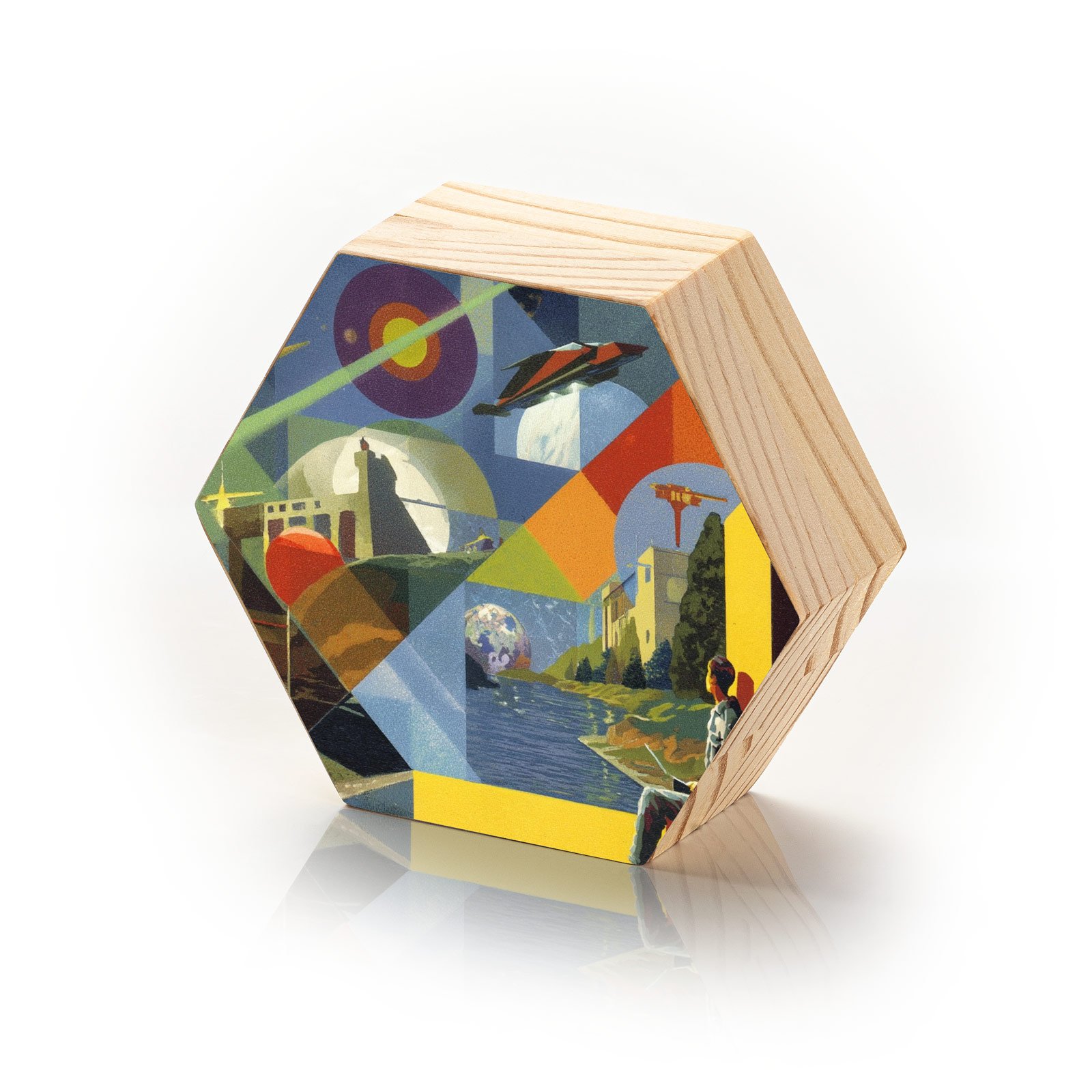 - Material: madeira pinus natural com impressão Fine Art e acabamento em metacrilato;