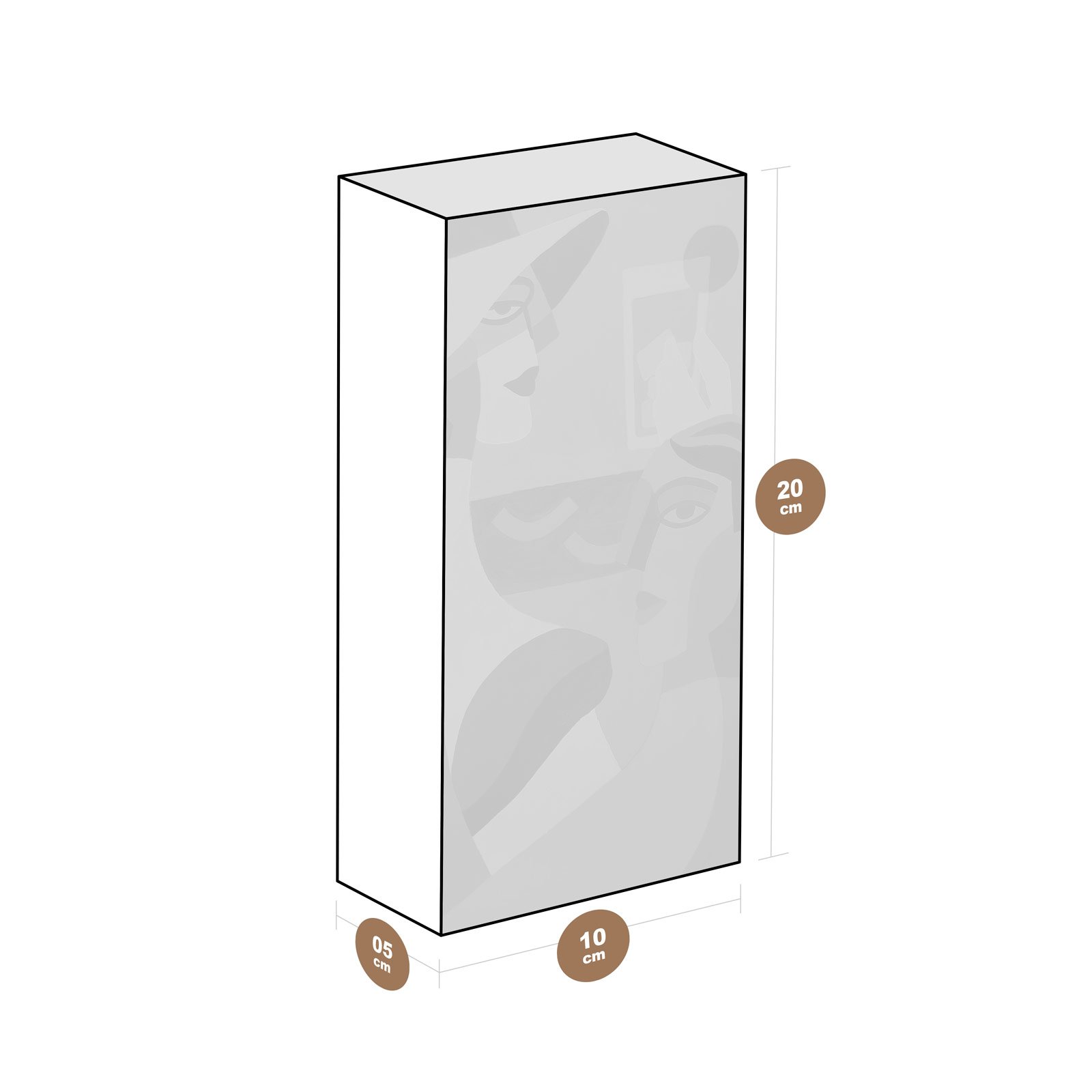 - Dimensões: 20 cm (altura) x 10 cm (largura) x 5 cm (profundidade);