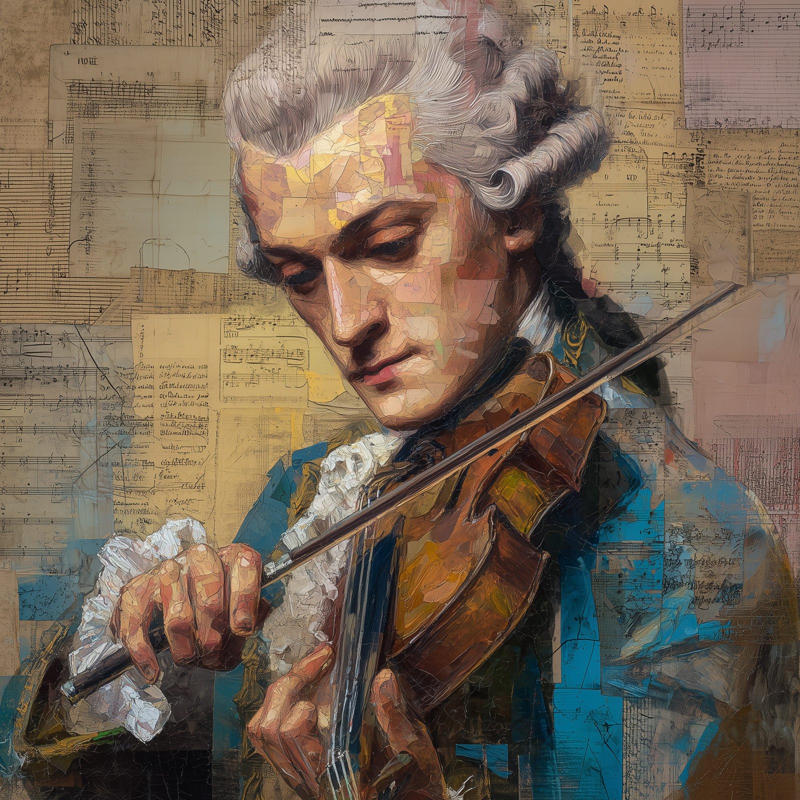 Entre partituras antigas e pinceladas que ecoam tradição, “Virtuose Clássico” celebra o poder eterno da música erudita. A figura do violinista, envolto em trajes de época, traduz não apenas a técnica impecável, mas também a emoção silenciosa de quem vive para transformar notas em poesia. É uma obra que une disciplina e sensibilidade, trazendo para o presente a grandeza de um passado que jamais envelhece.